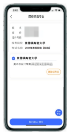 请考生选择学校“景德镇陶瓷大学”,然后选择考试场次。