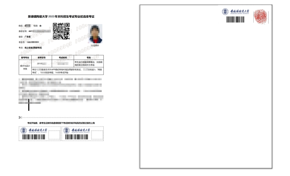 人脸识别通过后,考生根据语音指令在主机镜头前手持身份证和准考证验证身份、展示试卷正反面、在语音指令提示下将从准考证上剪下的条形码及方框贴在考试用纸右上角,同时在条形码右侧方框内加盖本人右手食指手印。